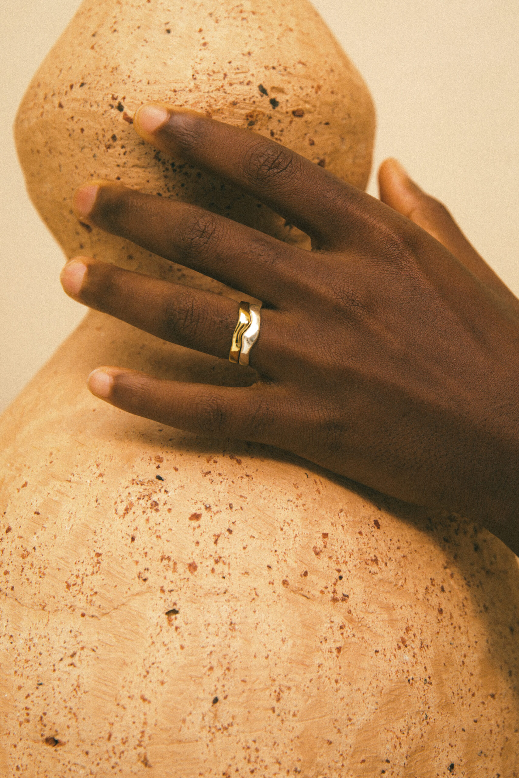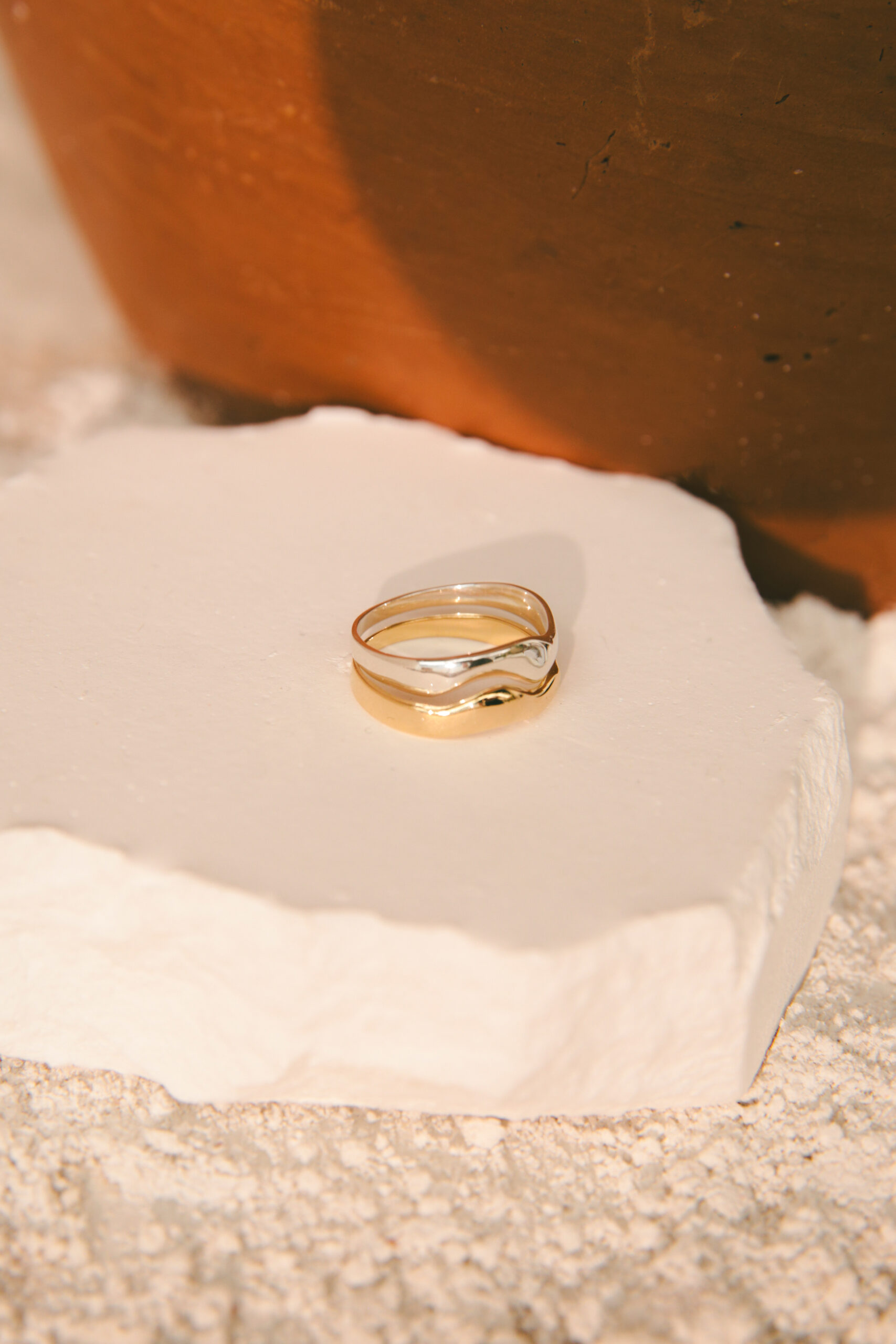 O anel Solo é o conjunto de duas (2) peças, um (1) anel prata 925 e um (1) anel prata 925 banhado a ouro 18K.